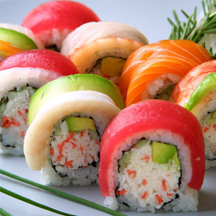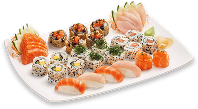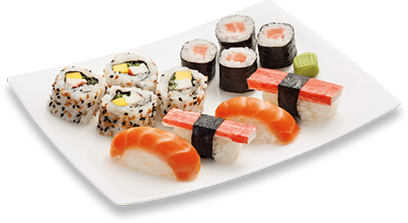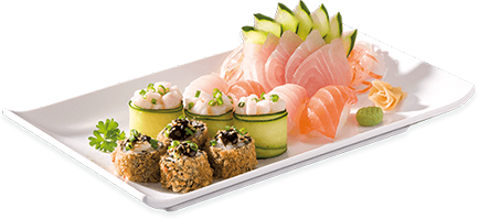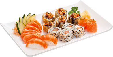 Chef choice of 12 pieces sushi, 6 pieces sashimi, with choice of 2 regular sushi roll.